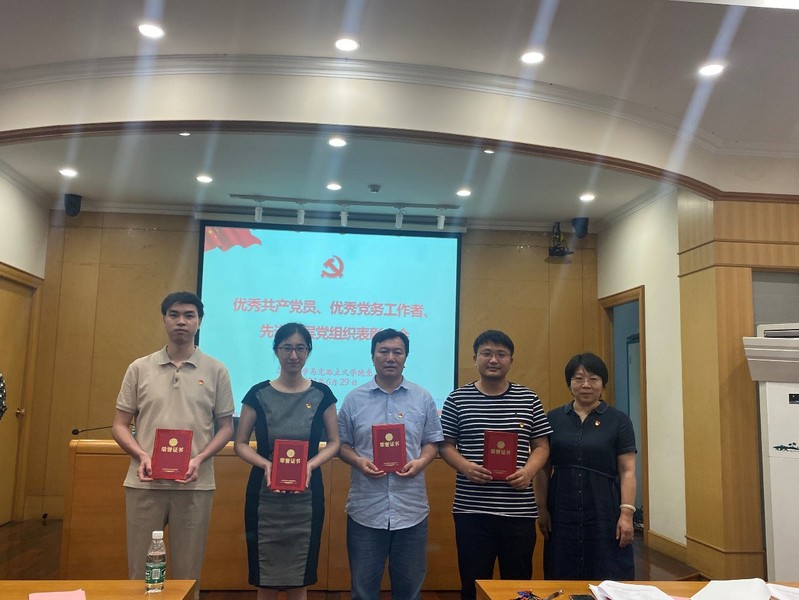 美女做爱 党委委员姜建成、副院长茆汉成为受到美女做爱 党委表彰的优秀共产党员代表颁发荣誉证书,并合影留念。