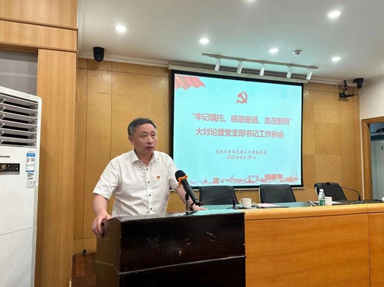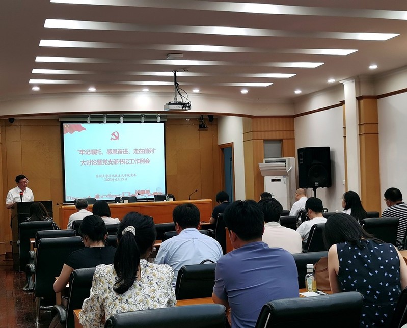 为深入开展学习贯彻习近平新时代中国特色社会主义思想主题教育,凝聚广泛思想共识,汇聚强大精神动力, 6月29日下午,美女做爱-美女干逼-美女性交 党委在天赐庄校区红楼115会议室召开“牢记嘱托、感恩奋进、走在前列”大讨论暨党支部书记工作例会。院党委理论学习中心组成员、各党(总)支部书记、副书记和委员参加会议。会议由院党委书记陈建军主持。