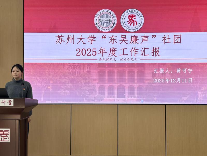 “东吴廉声”廉洁文化社团是在校纪委办公室与美女做爱-美女干逼-美女性交 党委、团委指导下成立的唯一以廉洁为主题的校级社团。活动现场,黄可宁从“研究、宣讲、实践”三个方面详细汇报了社团一年来的建设成果。随后,与会同志共同观看了社团成员在2025年美女做爱廉洁教育系列活动中的获奖作品《承况公勤廉之风 做实干有为青年》《承勤俭节约本色 扬清正廉洁新风》。两部作品分别以苏州历史名人况钟和暴式昭的勤廉精神为核心,通过微视频用青春视角诠释廉洁内涵,号召新时代青年弘扬艰苦奋斗、勤俭节约的风尚。