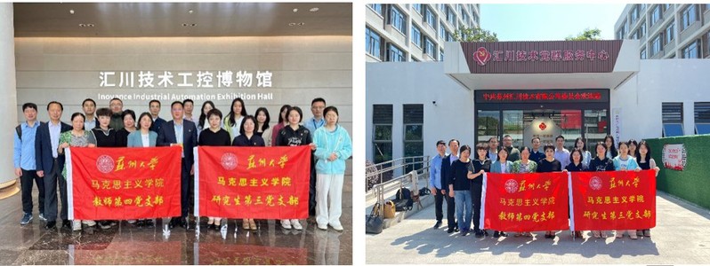在苏州汇川技术有限公司党委书记赵成军带领下,师生党员参观汇川技术工控博物馆和汇川技术党群服务中心。在汇川技术工控博物馆,师生党员通过工业控制系统在衣、食、住、行等产业制造中的运用展示,真实体验汇川技术有限公司“推进工业文明,共创美好生活”的愿景使命;在工业控制系统更新迭代的发展历程中,深刻体悟汇川技术有限公司坚持创新是第一动力、人才是第一资源理念,潜心研发、技术攻关、自主创新的科技报国精神,共同领略汇川技术作为行业领军企业在推动中国工业自动化进程中所作出的积极贡献。在汇川技术党群服务中心,深入学习了解“同心汇梦”党建品牌内涵、“四心四力”党建工作运行机制和“红色工程师”文化,切实感受汇川技术有限公司党建工作的规范、创新、活力和高质,真正做到了高质量党建引领企业高质量发展。